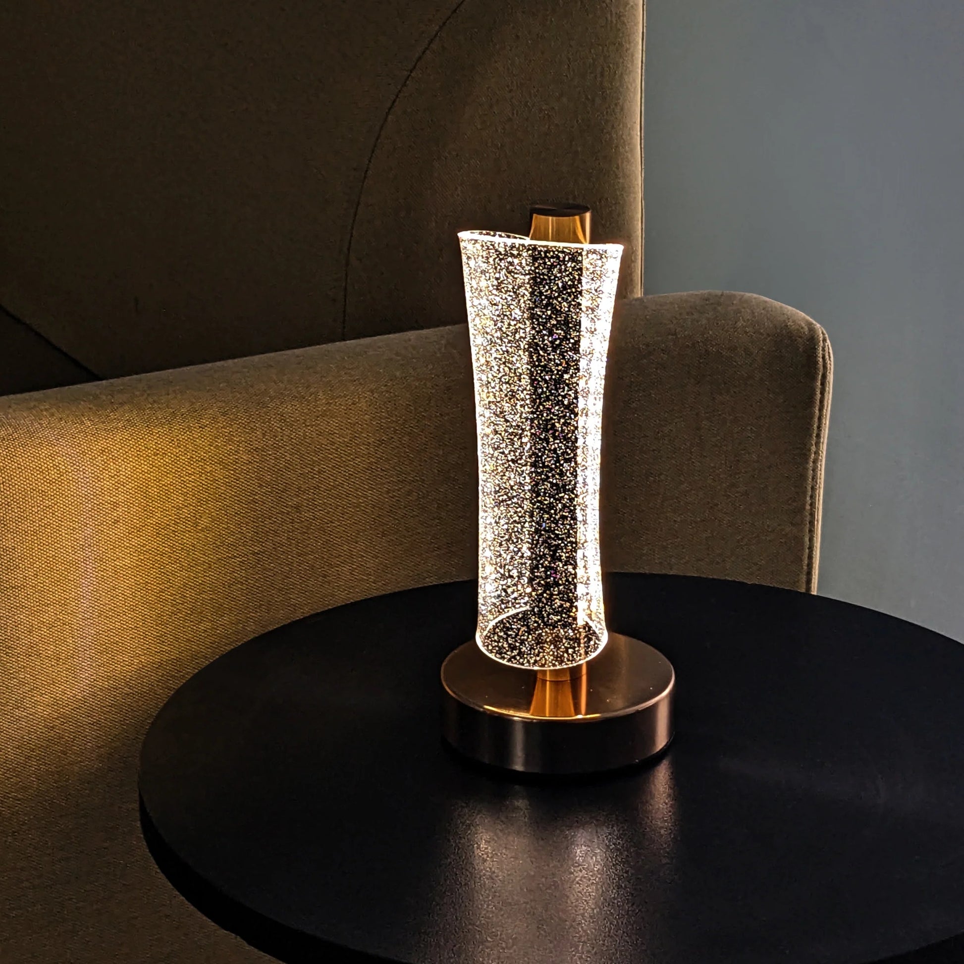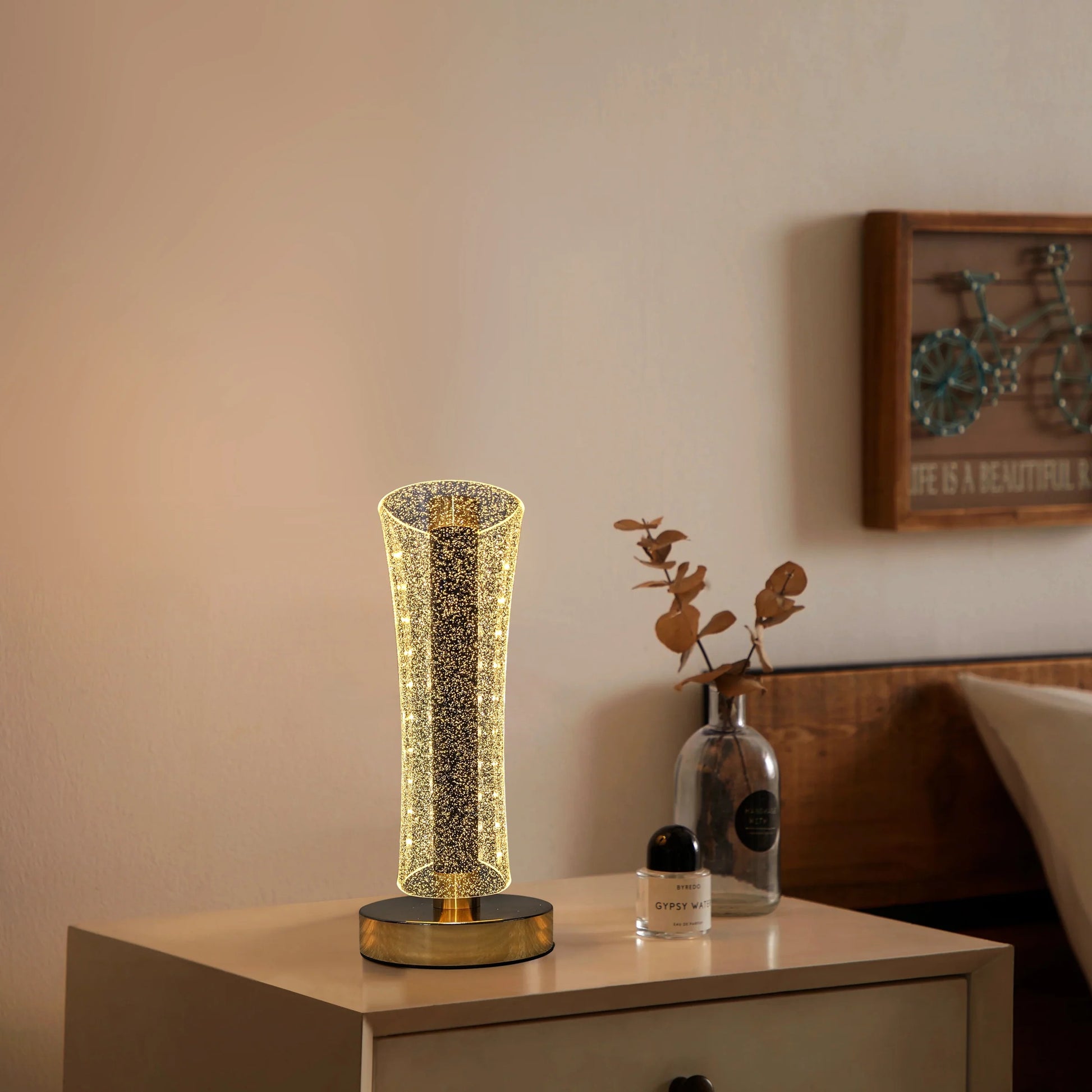 Enhance your space with this exquisite LED crystal table lamp. Featuring a unique shimmering crystal-cut design, this lamp adds a touch of modern elegance to any room. The lamp's warm LED lighting and sleek metallic base create an inviting atmosphere, perfect for living rooms, bedrooms, or workspaces. Equipped with a USB charging port, it blends functionality with style, making it a versatile addition to your home or office.